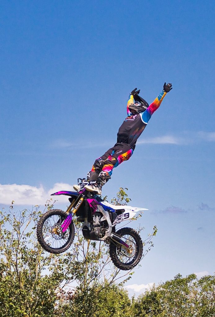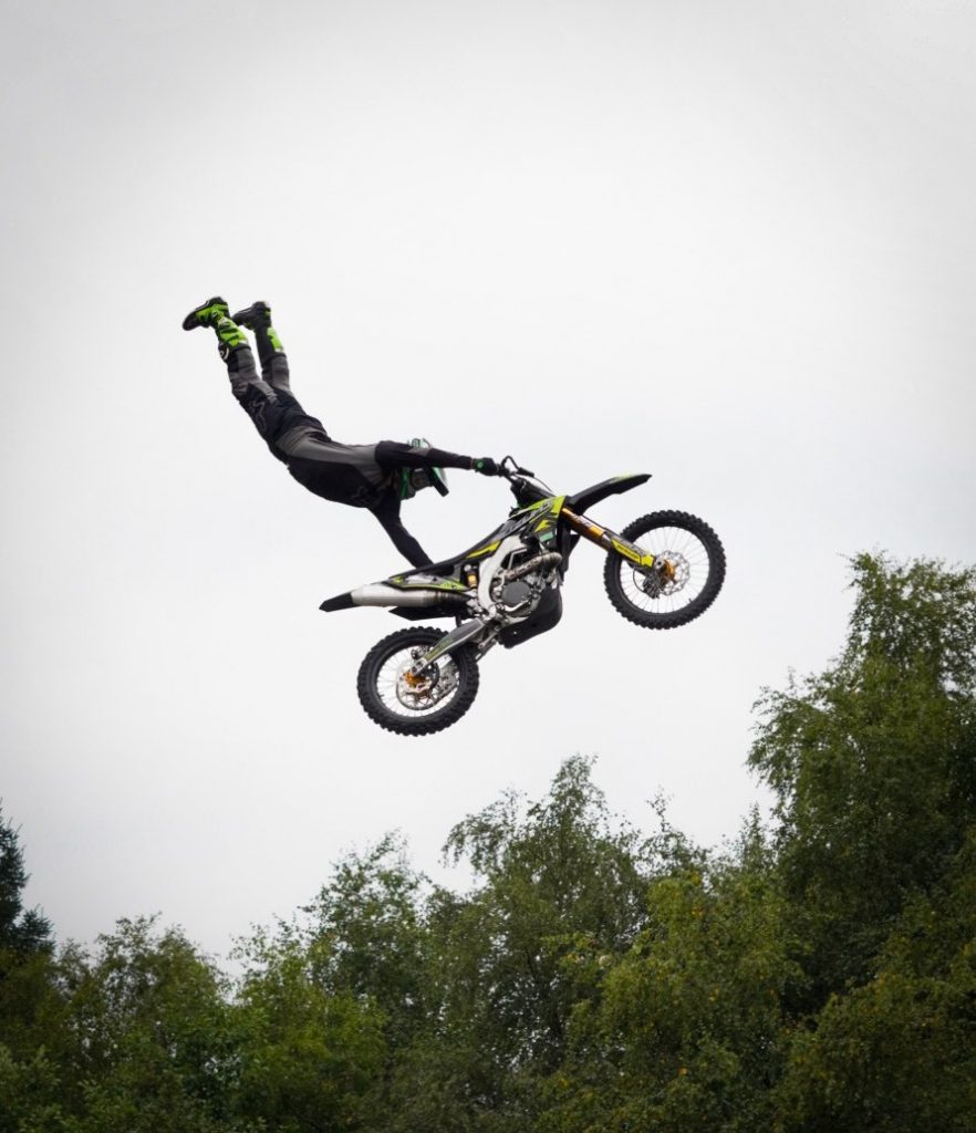 L’art du FMX est maĂźtrisĂ© sous toutes ses formes, mĂȘme avec des BMX, du VTT Dirt, ou des motos Ă©lectriques ! Le crew, composĂ© de Fabien Vinerta, Malik Vouillamoz et SĂ©bastien Bouyssou, s’Ă©lance sur des sauts de 21 mĂštres de long pour culminer Ă plus de 8 mĂštres de haut. Au programme : des figures techniques, de l’amplitude et le mythique Backflip pour une dose d’adrĂ©naline maximale !
